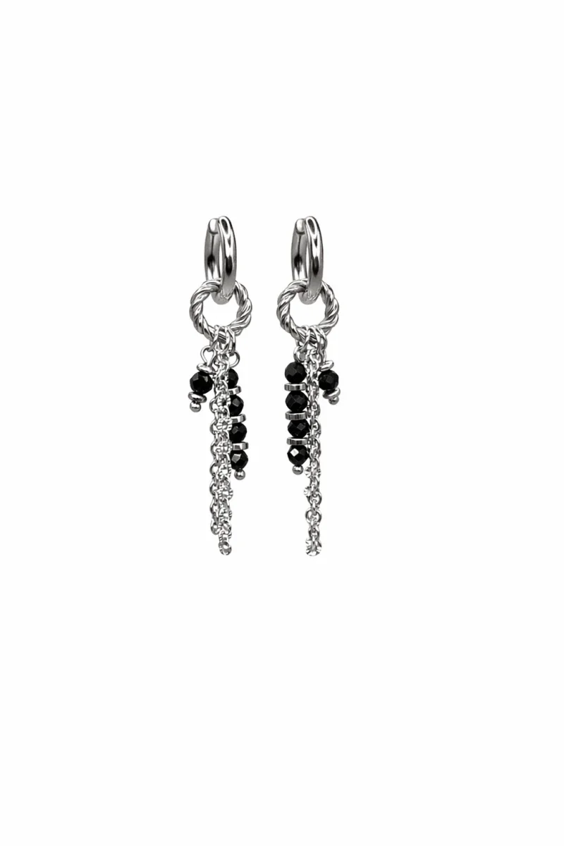 Minimalistisch design ontmoet verfijnde luxe. Stainless steel oorbellen met subtiel gekleurde bedels en sierlijke kettinkjes, ontworpen voor een tijdloze en elegante uitstraling.