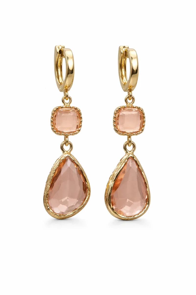 De facetgeslepen stenen geven een prachtige glans en zorgen voor een luxe uitstraling, terwijl het speelse druppeldesign een verfijnde look creëert.