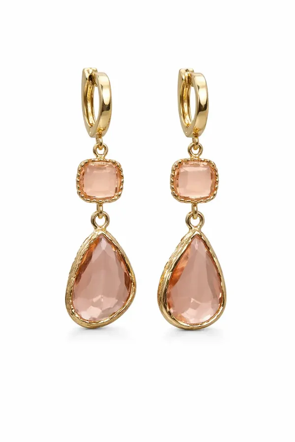 Deze kleurige (hoogwaardig goldplated) oorbellen met druppelvormige stenen zijn een elegante blikvanger met een romantische touch.